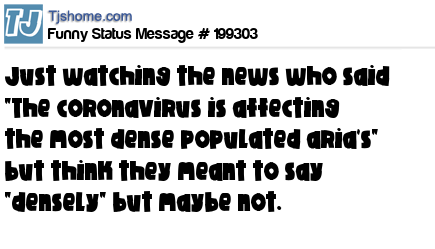 X is Just watching the news who said "The coronavirus is affecting the most dense populated aria's" but think they meant to say "densely" but maybe not.