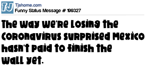 X is The way we're losing the Coronavirus surprised Mexico hasn't paid to finish the wall yet.