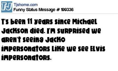 X says t's been 11 years since Michael Jackson died. I'm surprised we aren't seeing Jacko impersonators like we see Elvis impersonators.