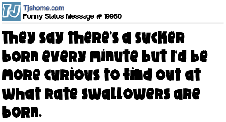 X They say there's a sucker born every minute but I'd be more curious to find out at what rate swallowers are born.
