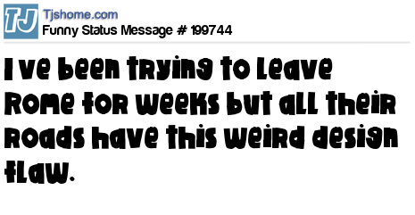 - # 160772 I've been trying to leave Rome for weeks,,, but all their roads have this weird design flaw.