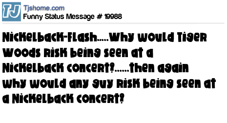 X Nickelback-Flash…..Why would Tiger Woods risk being seen at a Nickelback concert?......then again why would any guy risk being seen at a Nickelback concert?