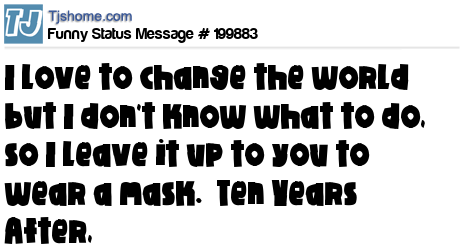 X is I love to change the world but I don't know what to do, so I leave it up to you to wear a mask. Ten Years After,