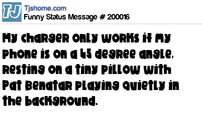 X says My charger only works if my phone is on a 45 degree angle, resting on a tiny pillow with Pat Benatar playing quietly in the background.