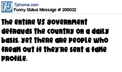 X says The entire US government defrauds the country on a daily basis, yet there are people who freak out if they're sent a fake profile.