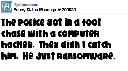 X says The police got in a foot chase with a computer hacker. They didn’t catch him. He just ransomware.
