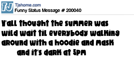 X is Y'all thought the summer was wild wait til everybody walking around with a hoodie and mask 😅 and it's dark at 5pm