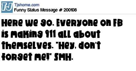 X says Here we go. Everyone on FB is making 911 all about themselves. "Hey, don't forget me!" SMH.