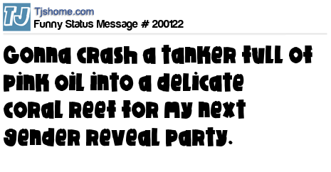 X says Gonna crash a tanker full of pink oil into a delicate coral reef for my next gender reveal party.