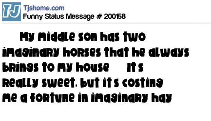X says My middle son has two imaginary horses that he always brings to my house It’s really sweet, but it’s costing me a fortune in imaginary hay