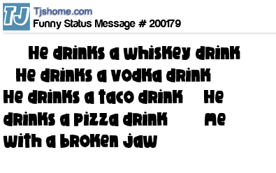 X says He drinks a whiskey drink He drinks a vodka drink He drinks a taco drink He drinks a pizza drink – me with a broken jaw