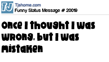 - # 121812 I'm never wrong. One time, I thought I was wrong, but I was mistaken...