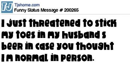 X says I just threatened to stick my toes in my husband’s beer in case you thought I’m normal in person.