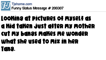X says Looking at pictures of myself as a kid taken just after my mother cut my bangs makes me wonder what she used to mix in her Tang.