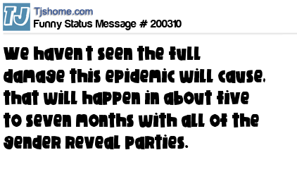 X says We haven’t seen the full damage this epidemic will cause, that will happen in about five to seven months with all of the gender reveal parties.