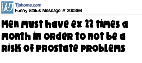 X says Men must have ex 22 times a month in order to not be a risk of prostate problems