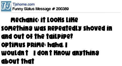 X says mechanic: it looks like something was repeatedly shoved in and out of the tailpipe? optimus prime: haha, I wouldn’t—I don’t know anything about that