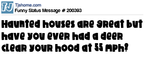 X says Haunted houses are great but have you ever had a deer clear your hood at 55 mph?