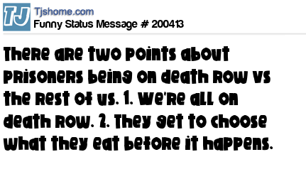 X says There are two points about prisoners being on death row vs the rest of us. 1. We're all on death row. 2. They get to choose what they eat before it happens.