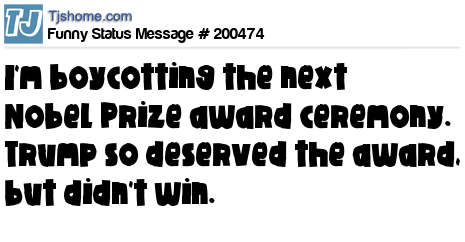 X is I'm boycotting the next Nobel Prize award ceremony. Trump so deserved the award, but didn't win.