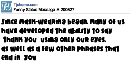 X says Since mask-wearing began, many of us have developed the ability to say “thank you” using only our eyes, as well as a few other phrases that end in “you”