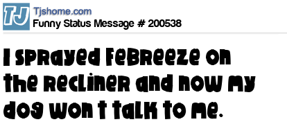 X says I sprayed FeBreeze on the recliner and now my dog won’t talk to me.