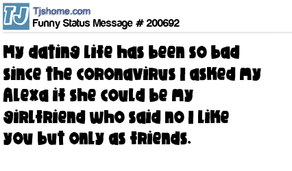 X is My dating life has been so bad since the coronavirus I asked my Alexa if she could be my girlfriend who said no I like you but only as friends.