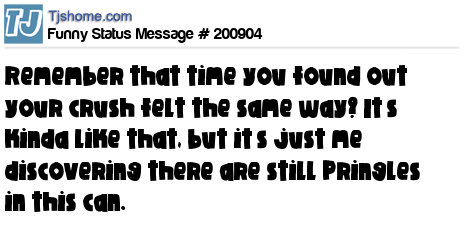X says Remember that time you found out your crush felt the same way? It’s kinda like that, but it’s just me discovering there are still Pringles in this can.