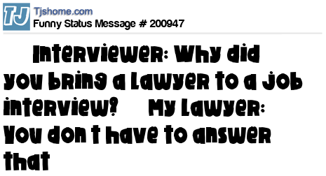 X says Interviewer: Why did you bring a lawyer to a job interview? My lawyer: You don’t have to answer that