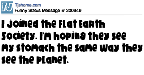 X says I joined the Flat Earth Society. I'm hoping they see my stomach the same way they see the planet.