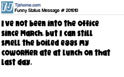- # 127343 I'm glad I don't work in an office. I can only imagine the smell at lunch time when everybody opens their egg salad sandwiches.