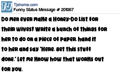 X says Do men ever make a Honey-Do list for their wives? Write a bunch of things for her to do on a piece of paper, hand it to her and say "Here, get this stuff done." Let me know how that works out for you.