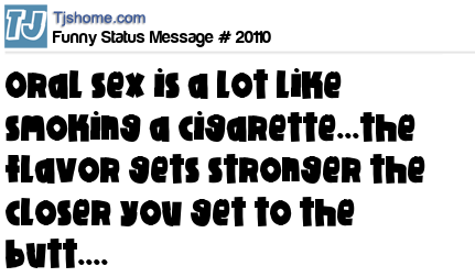 - # 9683 oral sex is a lot like smoking a cigarette...the flavor gets stronger the closer you get to the butt....
