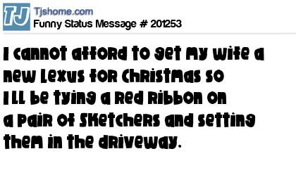 X says I cannot afford to get my wife a new Lexus for Christmas so I’ll be tying a red ribbon on a pair of Sketchers and setting them in the driveway.