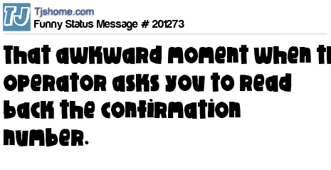 X says That awkward moment when the operator asks you to read back the confirmation number.
