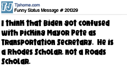 X says I think that Biden got confused with picking Mayor Pete as Transportation Secretary. He is a Rhodes Scholar, not a Roads Scholar.