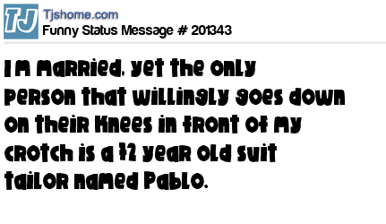 X says I’m married, yet the only person that willingly goes down on their knees in front of my crotch is a 72 year old suit tailor named Pablo.