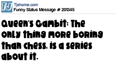 X says Queen's Gambit: The only thing more boring than chess, is a series about it.