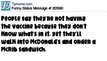 X is People say they're not having the vaccine because they don't know what's in it, yet they'll walk into McDonald's and order a McRib sandwich.