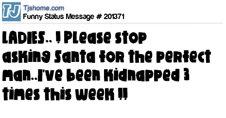 X says LADIES.. ! Please stop asking Santa for the perfect man..I've been kidnapped 3 times this week !!