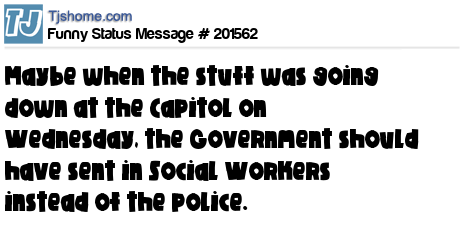 X says Maybe when the stuff was going down at the Capitol on Wednesday, the Government should have sent in Social Workers instead of the police.