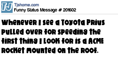 X says Whenever I see a Toyota Prius pulled over for speeding the first thing I look for is a ACME rocket mounted on the roof.