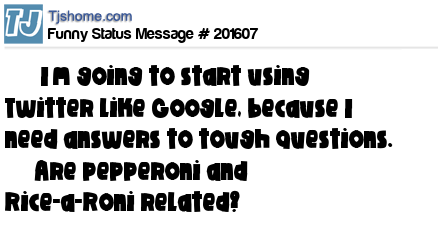 X says       I’m going to start using Twitter like Google, because I need answers to tough questions.      Are pepperoni and Rice-a-Roni related?