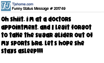 X says oh shiit. i’m at a doctors appointment, and I legit forgot to take the sugar glider out of my sports bra. let’s hope she stays asleep!!!