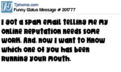 X says I got a spam email telling me my online reputation needs some work. And, now I want to know which one of you has been running your mouth.
