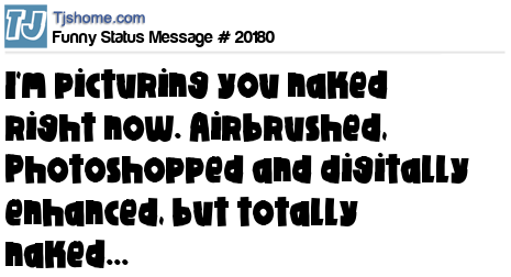 X I'm picturing you naked right now. Airbrushed, Photoshopped and digitally enhanced, but totally naked...