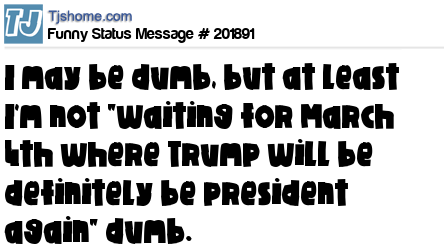 X is I may be dumb, but at least I'm not "waiting for March 4th where Trump will be definitely be president again" dumb.