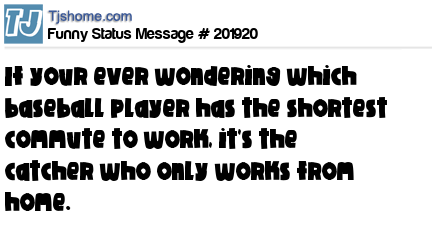 X is If your ever wondering which baseball player has the shortest commute to work, it's the catcher who only works from home.