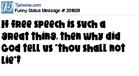X is If free speech is such a great thing, then why did God tell us "thou shall not lie"?