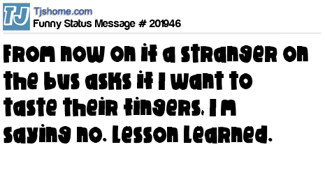 X says From now on if a stranger on the bus asks if I want to taste their fingers, I’m saying no. Lesson learned.
